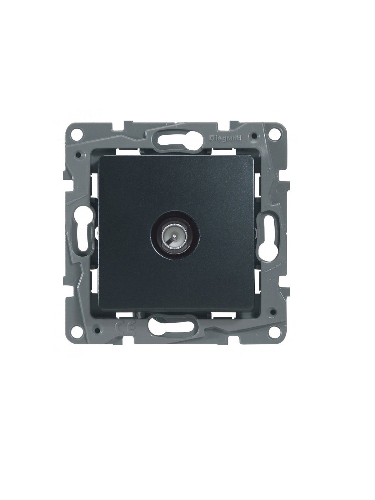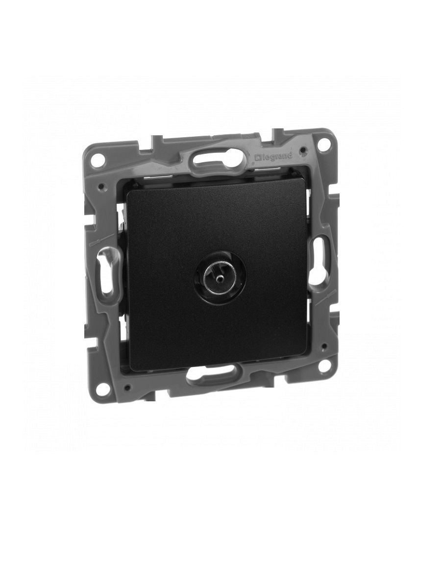 Розетка Legrand в черном цвете, скрытая установка, для ТВ кабеля антенны. Подходит для ремонта в квартире, на даче, в офисе. Лаконичный дизайн, высокое качество