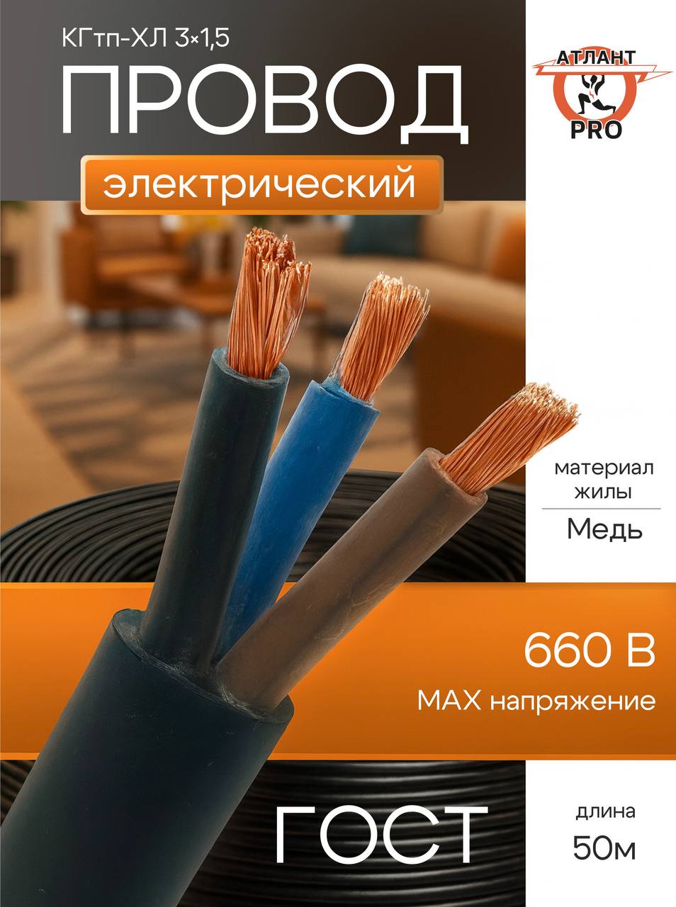 Кабель КГтп-ХЛ 3х1.5 (50 м) Отличный выбор для надежного электромонтажа благодаря медной многопроволочной конструкции, обеспечивающей высокую гибкость и долговечность. Подходит для установки в помещениях и наружных работах, выдерживая напряжение до 660 В. Сечение 1,5 мм² и три изолированные жилы позволяют эффективно решать задачи бытовой и промышленной проводки. Черный матовый цвет оболочки из ПВХ пластиката обеспечивает защиту от повреждений и гармоничную интеграцию в любое пространство. Поставляется в удобной бухте длиной 100 м, соответствующей ГОСТу. Идеален для сложных условий эксплуатации, где требуется сочетание прочности и легкости монтажа.#кгтп_хл #кабель #гибкий_кабель #проводка #атлантелектро