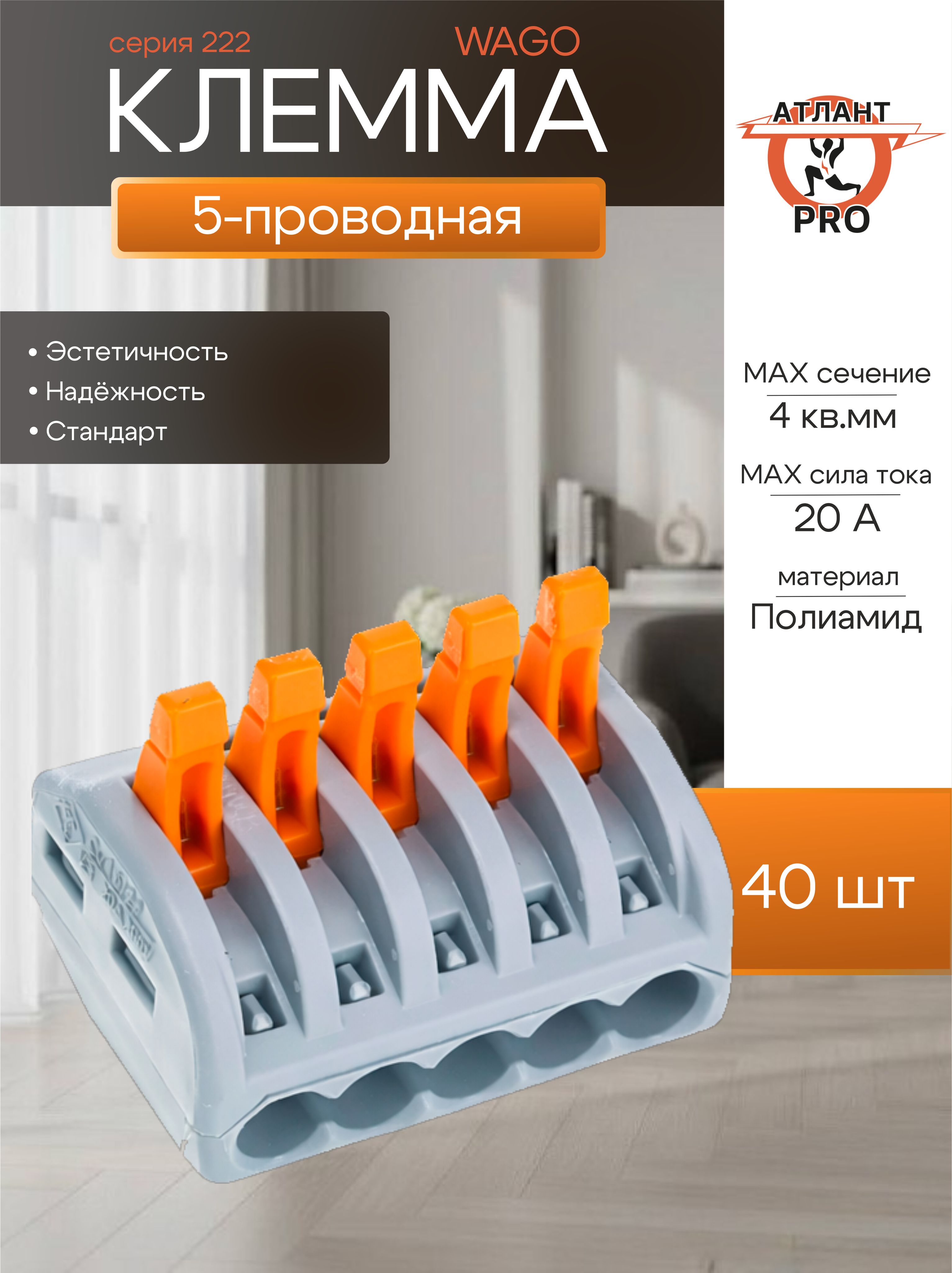 Клемма WAGO 222-415 представляет собой надежное решение для соединения проводов в электрических системах. В упаковке находится 40 штук высококачественных клемм, которые обеспечивают простой и безопасный способ монтажа. Данный клеммник создан с учетом современных стандартов и имеет пять контактов, что делает его универсальным для различных применений. Использование этих пятиконтактных клемм гарантирует надежное и прочное соединение, а также упрощает процесс подключения проводов. Кроме того, конструкция позволяет быстро и удобно осуществлять монтаж без необходимости использования специального инструмента. Это делает продукт идеальным для как профессиональных электриков, так и для домашних мастеров. Каждая клемма изготовлена с заботой о качестве и безопасности, что обеспечивает долговечность и надежность в эксплуатации. За счет оригинальных решений WAGO вы получаете продукт, который отвечает самым высоким требованиям. Эти клеммы особенно популярны среди специалистов, занимающихся строительством и ремонтом, благодаря их эффективности и простоте использования. Независимо от того, необходимо ли вам подключить несколько проводов в распределительной коробке или установить новое оборудование, клемма WAGO 222-415 станет отличным выбором. Инвестируя в данный товар, вы получаете возможность сделать электроснабжение вашего объекта более безопасным и эффективным. Этот клеммник подойдет для различных типов проводов и обеспечит надежное соединение в любых условиях. Выбирая клеммы данного бренда, вы можете быть уверены в их качестве и долговечности. Эффективные, простые в использовании и безопасные, они решают множество задач в области электроустановочных изделий, позволяя легко и быстро выполнять работы любой сложности. Не упустите возможность приобрести клемму WAGO 222-415 и удобство, которое она предлагает.