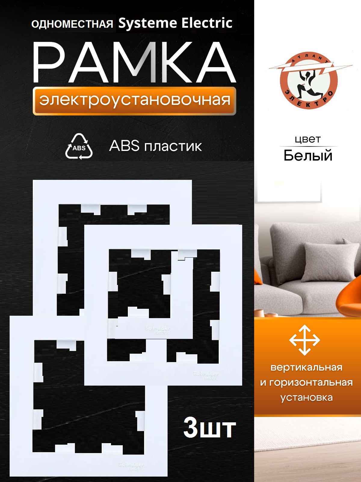 AtlasDesign 1-постовая рамка, универсальная, ATN000101 белый 3шт