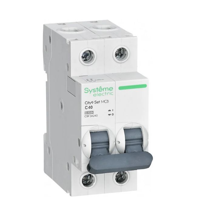 Автоматический выключатель серии City9 Set Systeme Electric, 2-полюсный, номинальный ток 40А, характеристика С, Icn = 4.5 кА. Применяется в электрических сетях напряжением 230 В. Предназначен для защиты от перегрузок и токов короткого замыкания. Оснащен механизмом «мгновенной коммутации». Ударопрочный корпус из специального пластика с 6 металлическими заклепками. Безопасные клеммы исключают попадание кабелей в заклеммное пространство. Тип модульный Тип монтажа на DIN-рейку Номинальное напряжение 230 В Отключающая способность 4.5 кА Климатическое исполнение УХЛ-4 Степень защиты IP20 Количество полюсов 2 Тип расцепления C Цвет корпуса белый Номинальный ток 40А Род тока AC (переменный ток) Модельный ряд City9