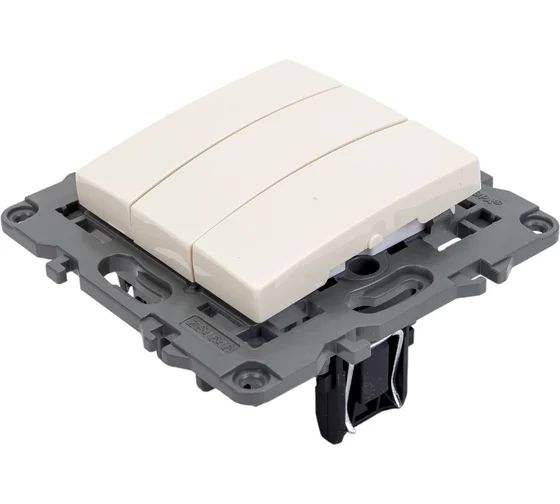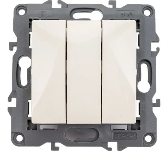 Тройной выключатель ЭРА 12-1107-02 10АХ-250В, IP20, слоновая кость сделан из поликарбоната и оснащён винтовыми уникальными клеммами ЭКСПЕРТ для надёжной фиксации жил кабеля в механизме. Парные клеммы обеспечивают соединение шлейфом. Монтаж в подрозетник производится и на лапки, и на винты. Рамка приобретается отдельно. Такие выключатели используют в комнатах или помещениях, где требуется разделить пространство на три зоны: спальную, рабочую, гостиную. Трехклавишный выключатель будет актуален, если Вы планируете комбинировать различные типы освещения: точечный, центральный (например, в детской комнате, спальне или гостиной, домашнем или офисном кабинете). Если говорить об офисных помещениях, где будет мало одного источника света, стоит задуматься об установке трехклавишных выключателей. Стильные и качественные трехклавишные выключатели универсальны и впишутся в любой интерьер. Электроустановочные изделия, которые Вы можете купить в нашем магазине, полностью соответствуют всем необходимым нормам безопасности.