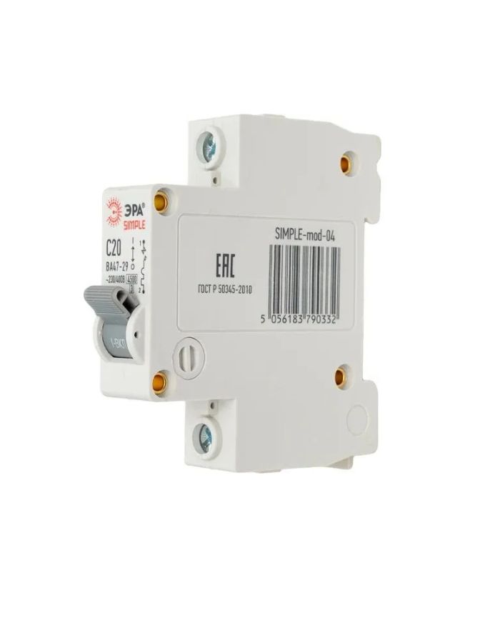 Автоматический выключатель ЭРА SIMPLE SIMPLE-mod-04 ВА 47-29 1P 20А кривая С 4,5кА предназначен для применения в электрических цепях напряжением до 400 В переменного тока частоты 50 Гц, их защиты при перегрузках и коротких замыканиях, проведения тока в нормальном режиме и не частых оперативных включений и отключений указанных цепей. Автоматические выключатели - это устройства, которые играют важную роль в обеспечении электробезопасности в домах, офисах, промышленных сооружениях и других местах. Они предназначены для защиты электрических сетей от перегрузок и коротких замыканий, а также для предотвращения пожаров и повреждений электрооборудования. Основные характеристики: Мониторят токовую нагрузку на электрической линии. В случае превышения допустимого предела они обрывают цепь, предотвращая потенциальные повреждения оборудования..Когда происходит короткое замыкание, автомат моментально обрывает цепь, предотвращая возможные пожары и повреждения проводки..Повышенная безопасность: Они оснащены механизмами, которые предотвращают случайное включение или отключение, обеспечивая дополнительный уровень безопасности..Легко устанавливаются и обслуживаются, что делает их идеальным выбором для домашних хозяйств и профессиональных электриков. Это необходимый элемент любой электрической системы, который обеспечивает защиту от перегрузок, коротких замыканий и других опасных ситуаций. Их использование способствует повышению электробезопасности и снижению риска возникновения пожаров.