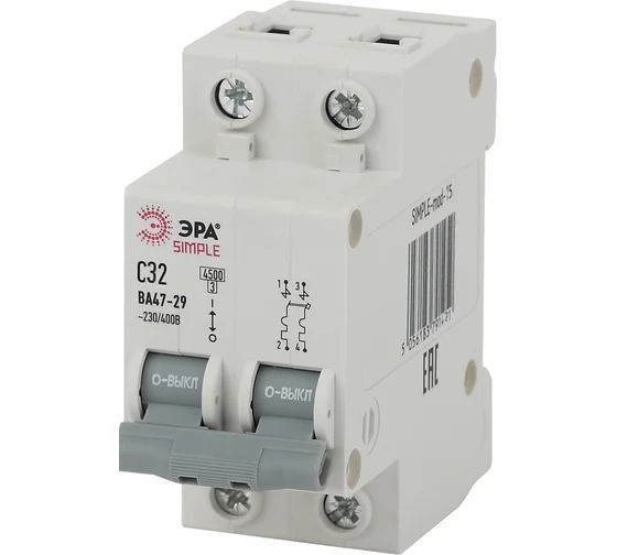 Автоматический выключатель ЭРА SIMPLE SIMPLE-mod-15 ВА 47-29 2P 32А кривая С 4,5кА 2х полюсный предназначен для применения в электрических цепях напряжением до 400 В переменного тока частоты 50 Гц, их защиты при перегрузках и коротких замыканиях, проведения тока в нормальном режиме и не частых оперативных включений и отключений указанных цепей. Автоматические выключатели - это устройства, которые играют важную роль в обеспечении электробезопасности в домах, офисах, промышленных сооружениях и других местах. Они предназначены для защиты электрических сетей от перегрузок и коротких замыканий, а также для предотвращения пожаров и повреждений электрооборудования. Основные характеристики: Мониторят токовую нагрузку на электрической линии. В случае превышения допустимого предела они обрывают цепь, предотвращая потенциальные повреждения оборудования..Когда происходит короткое замыкание, автомат моментально обрывает цепь, предотвращая возможные пожары и повреждения проводки..Повышенная безопасность: Они оснащены механизмами, которые предотвращают случайное включение или отключение, обеспечивая дополнительный уровень безопасности..Легко устанавливаются и обслуживаются, что делает их идеальным выбором для домашних хозяйств и профессиональных электриков. Это необходимый элемент любой электрической системы, который обеспечивает защиту от перегрузок, коротких замыканий и других опасных ситуаций. Их использование способствует повышению электробезопасности и снижению риска возникновения пожаров.