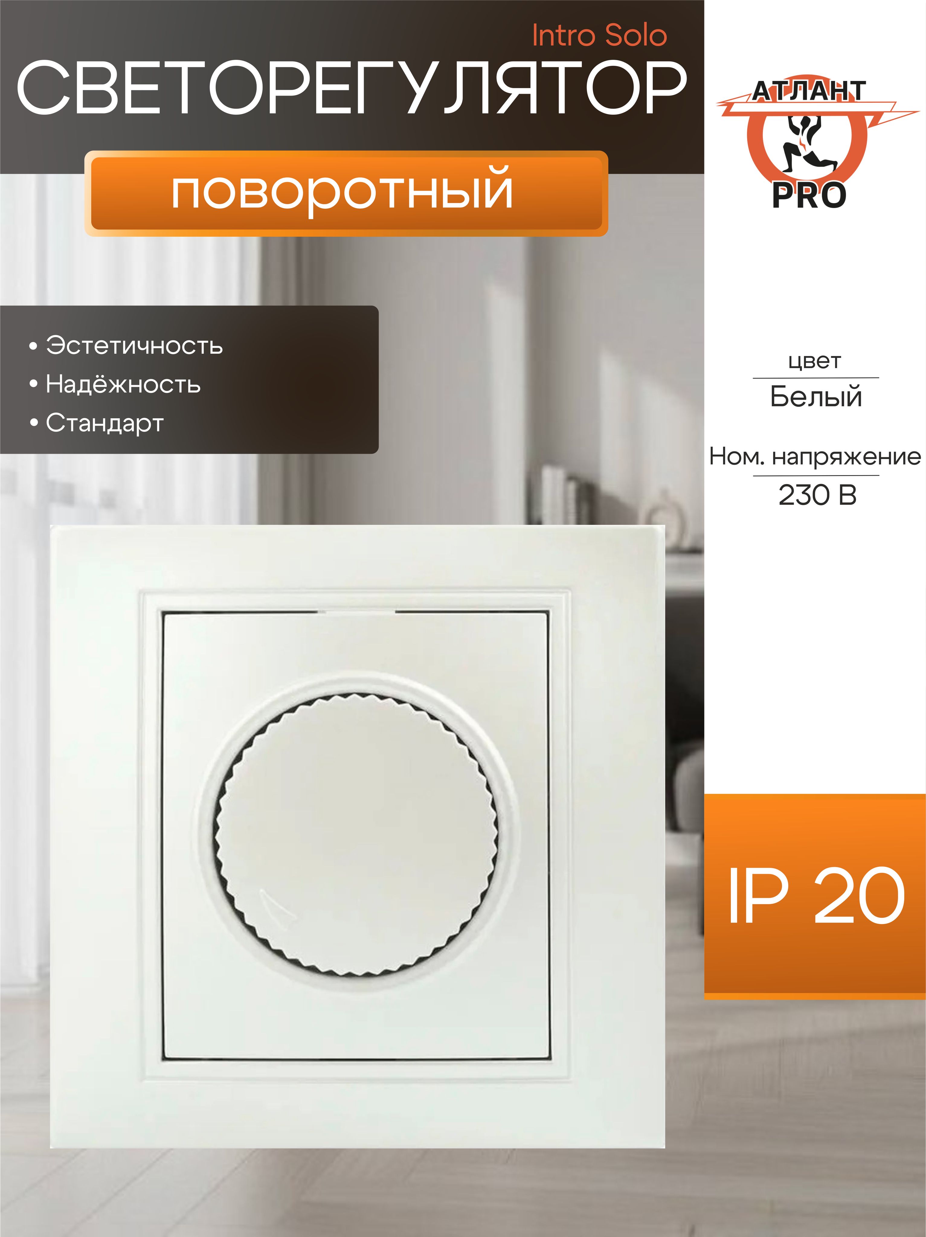 Диммер поворотный серии Intro Solo скрытой установки цвет белый 4-401-01. Номинальные характеристики 600ВА 230В . Диммер выполнен из негорючего термопласта, укомплектована одноместной рамкой. Для установки 2-х и более устройств в несколько подрозетников в ряд дополнительно используются многоместные рамки. Светорегулятор позволяет установить в помещении комфортный уровень освещения. Может использоваться как выключатель или переключатель. Универсальный светорегулятор (диммер) скрытого типа, поворотно-нажимной, предназначен для коммутации и регулирования яркости ламп накаливания, галогеновых ламп или низковольтных галогеновых ламп с полупроводниковым понижающим преобразователем на базе высокочастотного или электромагнитного трансформатора, а также диммируемых светодиодных ламп в сети переменного тока частотой 50 Гц с номинальным напряжением 230 В при внутренней и наружной установке в жилых, общественных и промышленных помещениях. На упаковке светодиодных ламп обязательно должна быть нанесена надпись «dimmable» или иное указание, что светодиодная лампа поддерживает функцию регулирования яркости (диммирования).