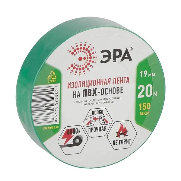 Изолента ПВХ 19ммх20м зеленая ЭРА C0036544 - незаменимый инструмент для профессионалов и домашних мастеров. Этот высококачественный продукт категории "Строительство и ремонт > Электрика > Изолента" идеально подходит для решения множества задач, связанных с изоляцией и ремонтом электропроводки. Изолента ПВХ от бренда ЭРА обеспечивает надежную защиту ваших электрических соединений. Размеры этой модели (ширина 19 мм, длина 20 м) оптимальны для удобного использования и позволяют покрыть значительные участки поверхности. Зеленый цвет обеспечивает отличную видимость на любой рабочей поверхности и помогает в цветовой маркировке. Главными преимуществами данного товара являются его высокая устойчивость к перепадам температур и влагозащищенность, что делает эту изоленту идеальной для использования как в помещении, так и на улице. Материал на основе ПВХ обеспечивает долговечность и надежность изоляции. Изолента ПВХ ЭРА обладает превосходной адгезией, благодаря чему крепко удерживается на проводах и других поверхностях, исключая риск расклейки даже под воздействием внешних факторов. Это гарантирует безопасность и продолжительный срок службы ваших электрических соединений. Благодаря высокому качеству материалов и прочной конструкции, изолента ПВХ ЭРА легко монтируется и обеспечивает идеальную изоляцию проводов, что немаловажно для поддержания безопасности и предотвращения коротких замыканий. Ее можно использовать для различных электрических работ, ремонтных задач и других целей. Выбирая изоленту ПВХ 19ммх20м зеленую ЭРА C0036544, вы получаете надежное и удобное решение для вашей работы. Этот продукт станет незаменимым инструментом в вашем арсенале для любых задач, связанных с электрикой. Превосходное качество, надежность и удобство использования - все это вы найдете в изоленте ПВХ от бренда ЭРА. Этот продукт обеспечит эффективность ваших работ и безопасность вашего оборудования.