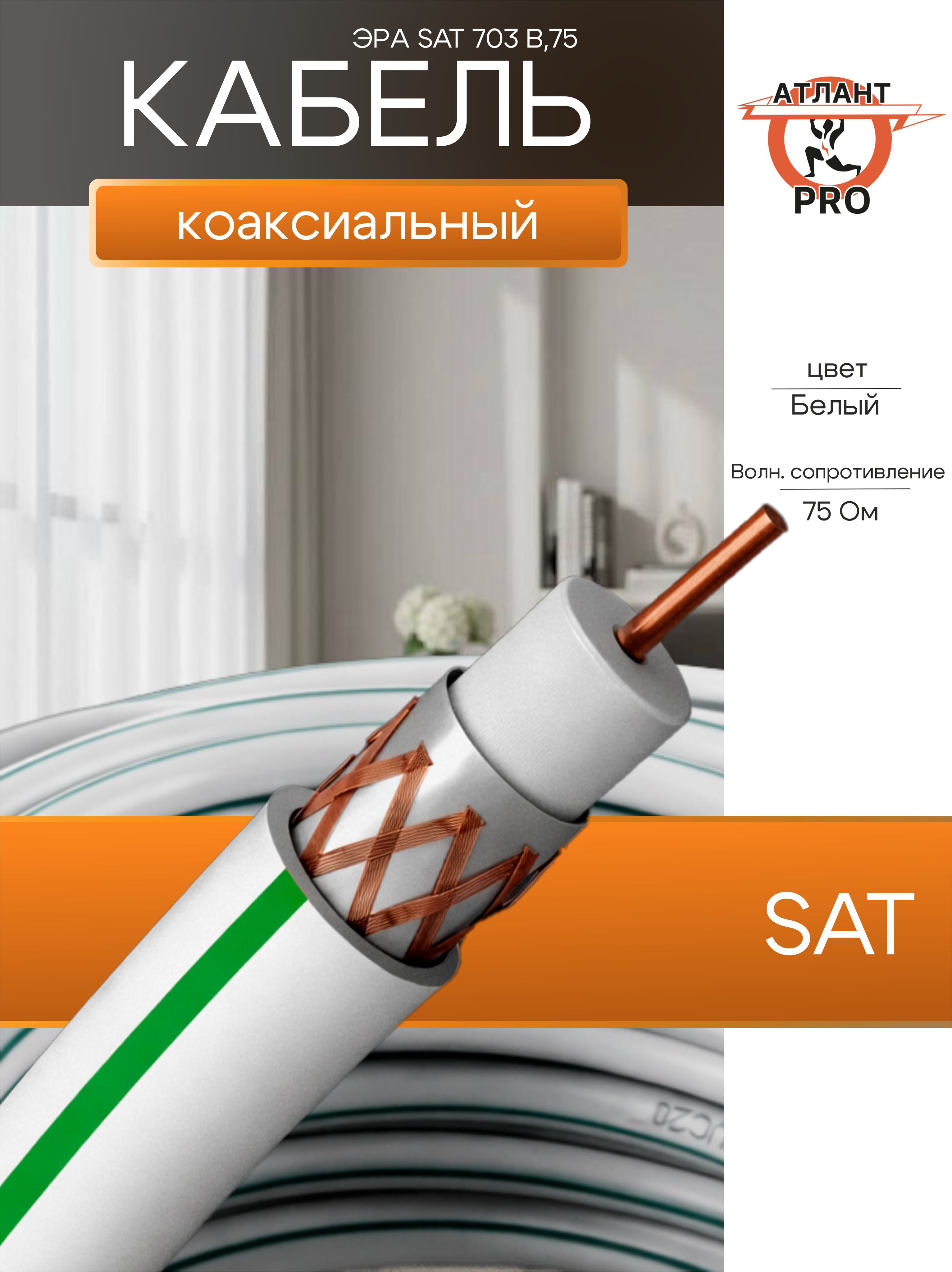 Коаксиальный кабель ЭРА SAT 703 B,75 Ом, Cu/, PVC, цвет белый предназначен для применения в системах кабельного и спутникового телевидения, видеонаблюдения, систем связи. Для прокладки внутри и вне помещений при условии защиты от осадков и солнечного излучения. Самое распространённое и лучшее решение для подключения спутникового телевидения. Тип - SAT Волновое сопротивление - 75 Ом Диаметр- 6.8 мм Материал -медь Изоляция - полиэтилен Материал оболочки -ПВХ (PVC) Количество жил - 1 шт Структура жилы -ОП Наличие защитного экрана - есть Способ монтажа - внутренний/внешний Max рабочая температура - 60 °С Min рабочая температура - 40 °С