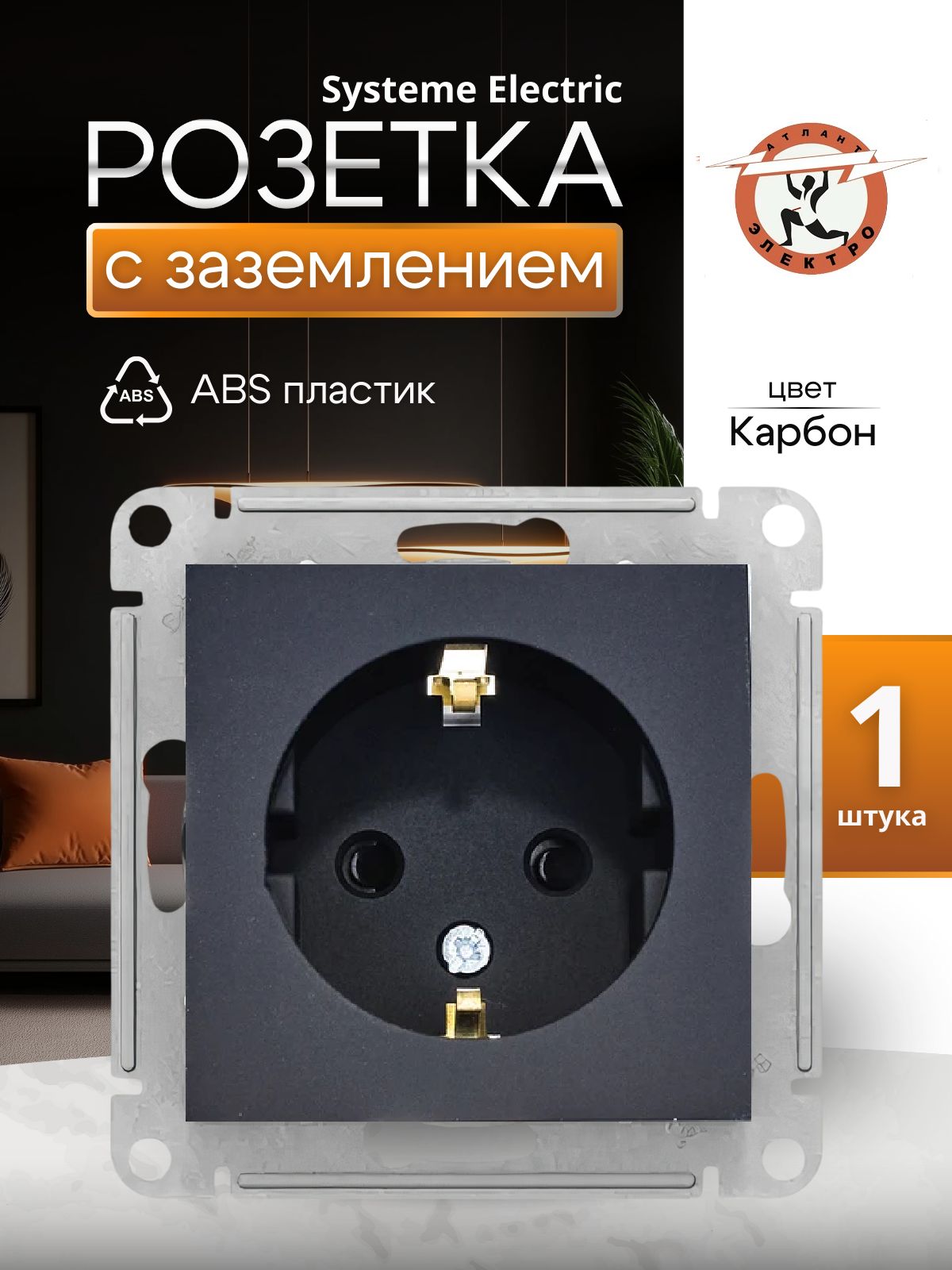 Розетка 1-м СП AtlasDesign 16А IP20 с заземл. механизм карбон SE ATN001043