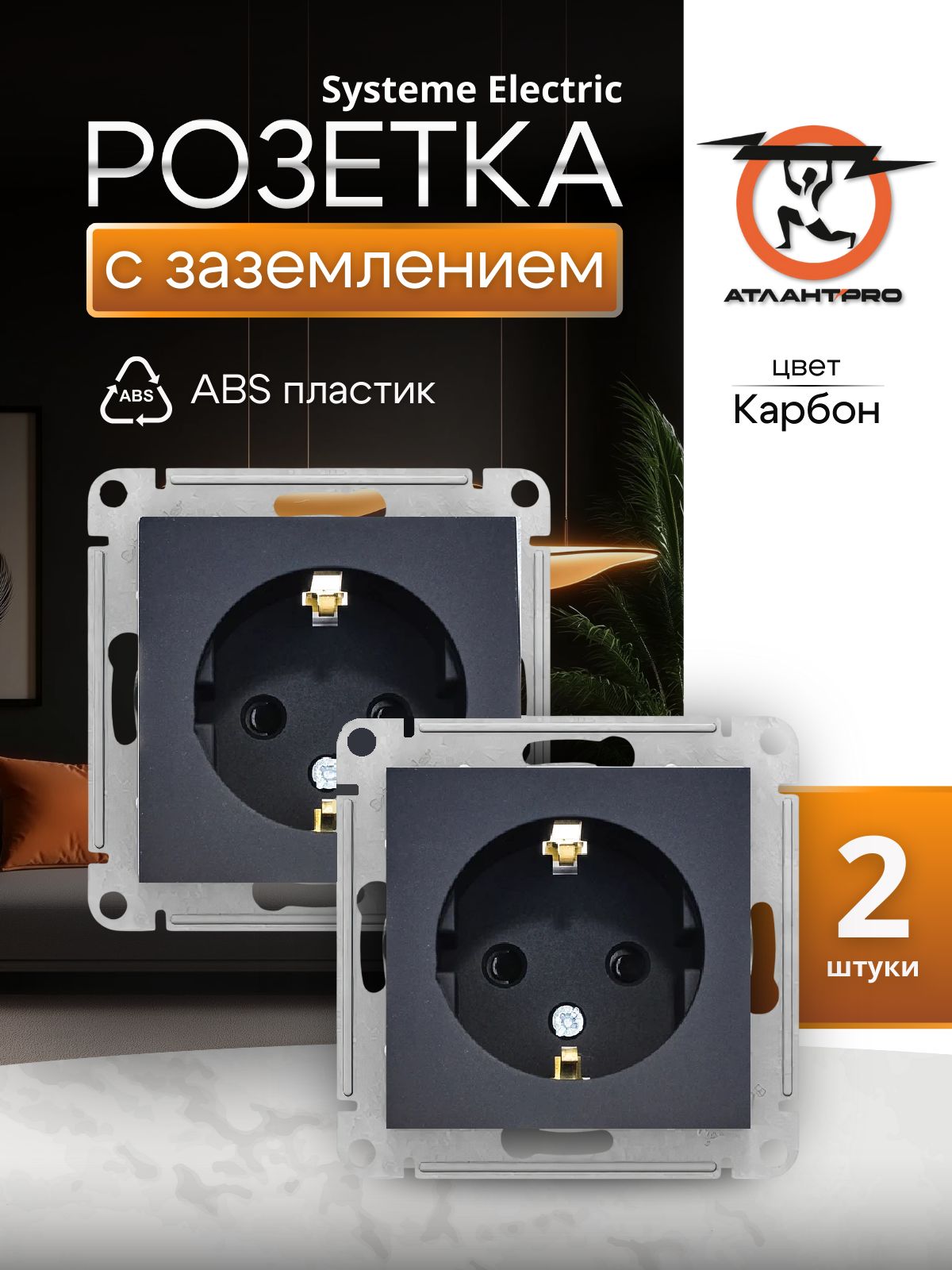 Розетка 1-м СП AtlasDesign 16А IP20 с заземл. механизм карбон SE ATN001043 2шт