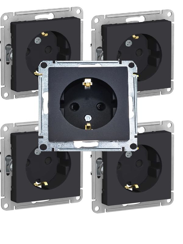 Розетка 1-м СП AtlasDesign 16А IP20 с заземл. механизм карбон SE ATN001043 5шт